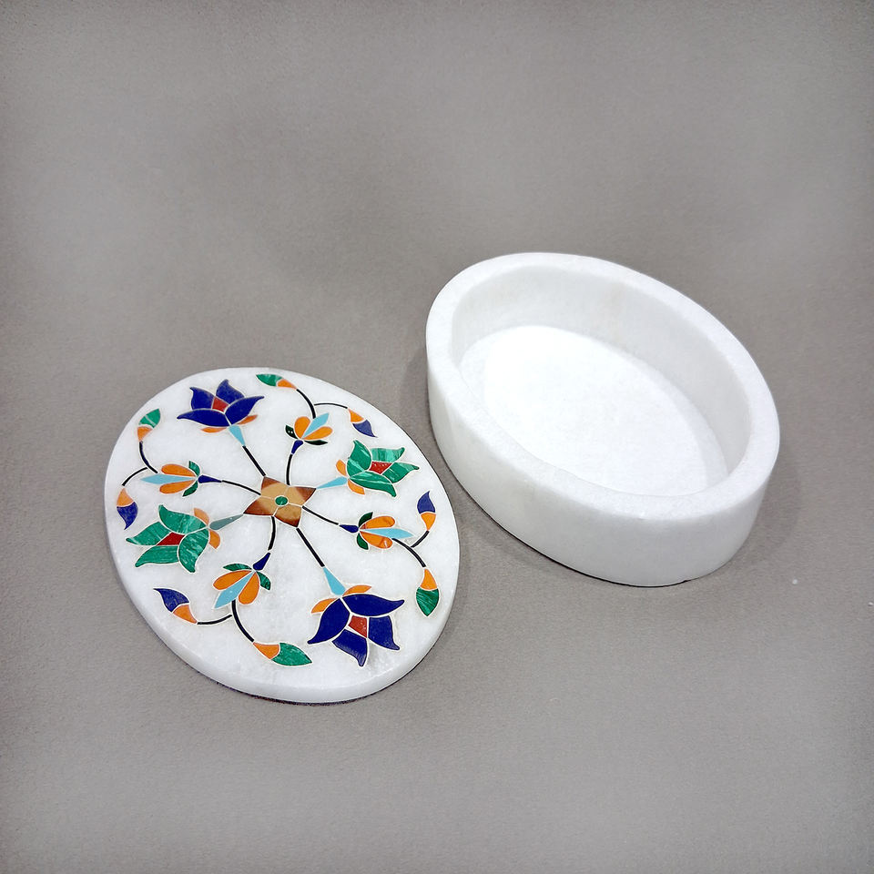 กล่องใส่เครื่องประดับทรงรีฝังอลาบาสเตอร์สุดหรู งานแฮนด์เมด ของขวัญสุดพิเศษ พรีเมียมจากอินเดีย ราคาขายส่ง คอลเลคชั่นขายส่งจำนวนมาก