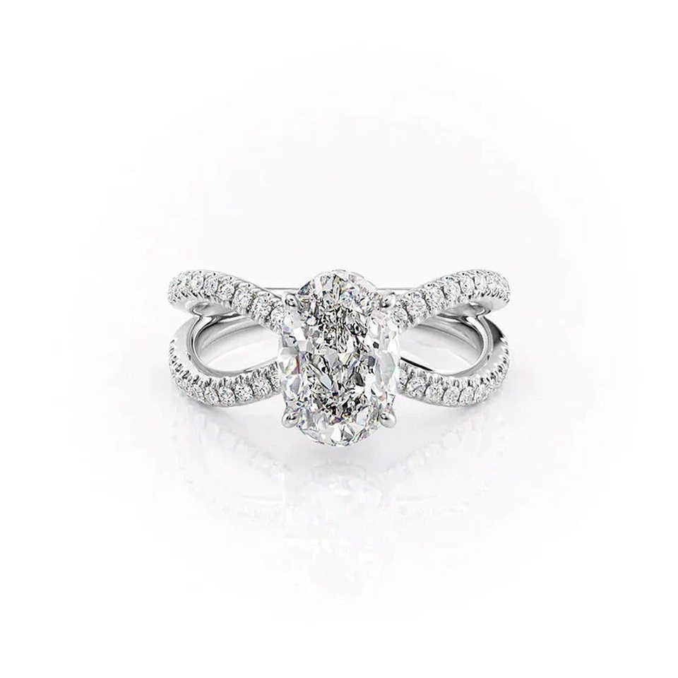 วงแหวนหมั้นเพชรโมอิสรูปวงรีที่สง่างามสำหรับข้อเสนอที่ทันสมัย