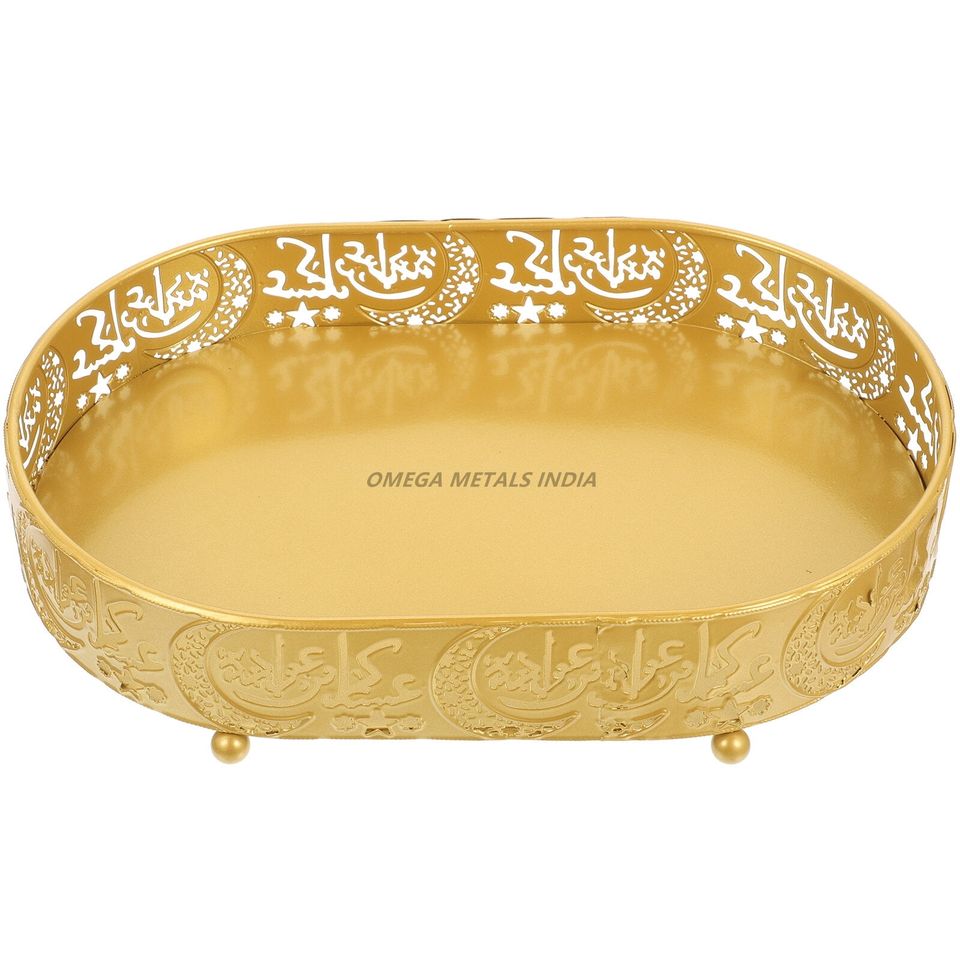 ถาดตกแต่งรูปวงรีสีทอง ดีไซน์ฉลุลายประณีต เหมาะสำหรับเสิร์ฟและเพิ่มความสวยงาม ราคาประหยัด