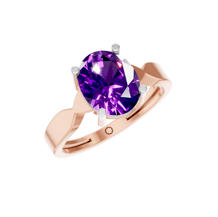สไตล์:แหวนอเมทิสต์ประดับพลอยเทียมพร้อมตัวเรือนแบบเบเซล