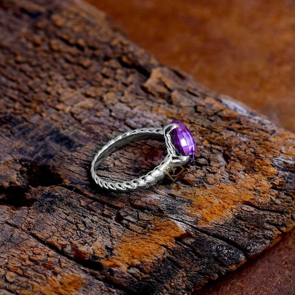แหวนเงินอเมทิสต์พลอยสีม่วงรูปวงรีที่สง่างามทำด้วยมือสำหรับงานปาร์ตี้โดยตรง