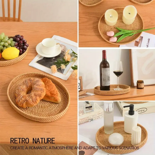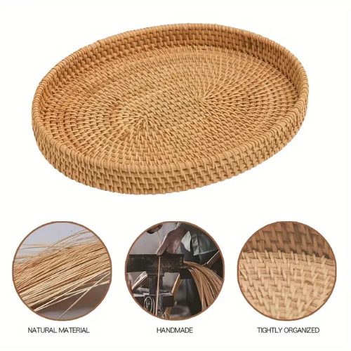 Elegant Oval Woven Tray Handcrafted Rattan Serving Platter with Decorative Perfect for Snacks & Beverages Home Accessory