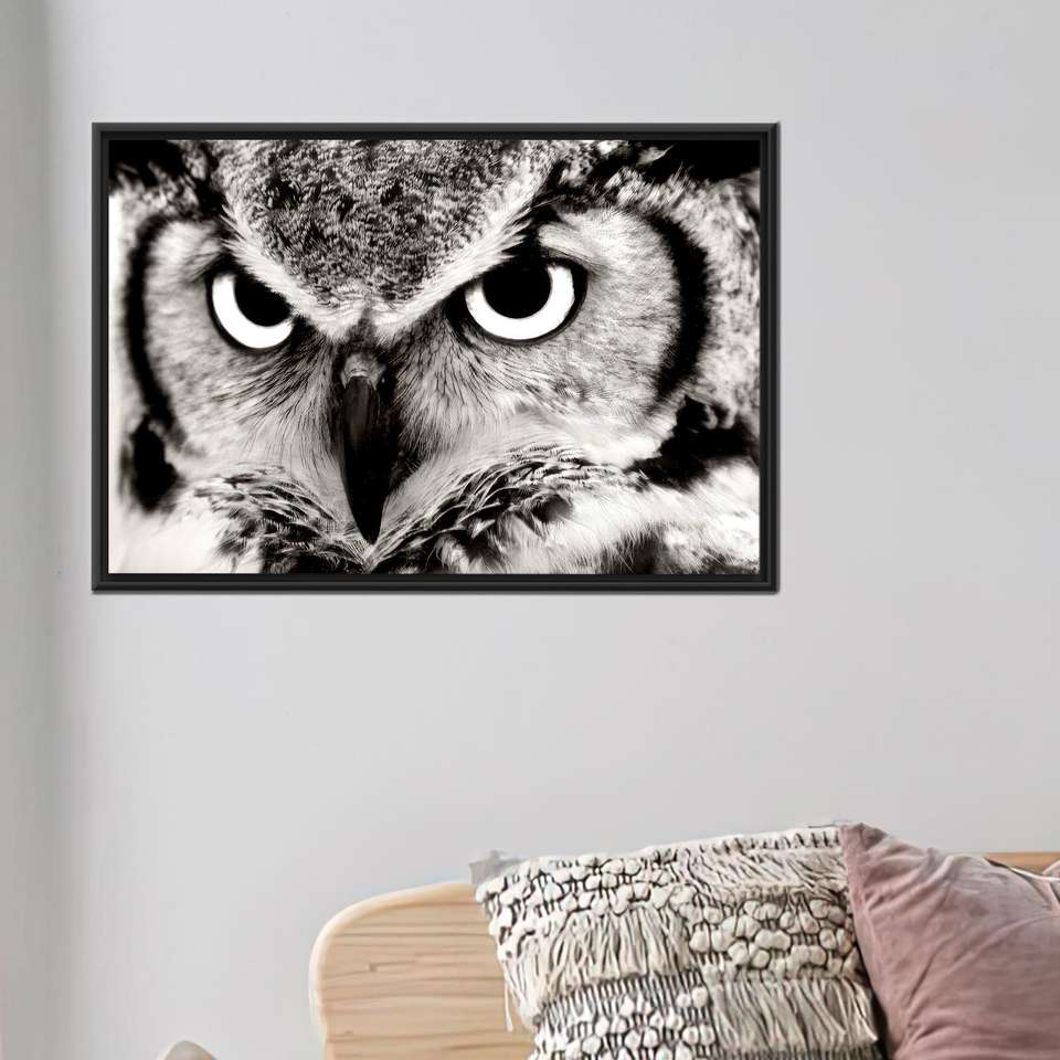 งานศิลปะบนผ้าใบพิมพ์ลายนกฮูกสุดหรูหรา - ของขวัญสัตว์เลี้ยงแบบสั่งทำพิเศษ,1P:กรอบสีดำ