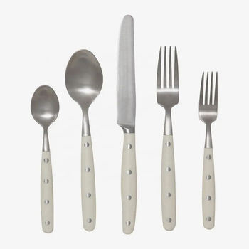 ชุดเครื่องใช้บนโต๊ะอาหารที่หรูหราสำหรับงานปาร์ตี้ที่ทำจากสเตนเลสสตีลสลักที่จับเหมาะสำหรับการจัดงานพิเศษและการตกแต่งโต๊ะ
