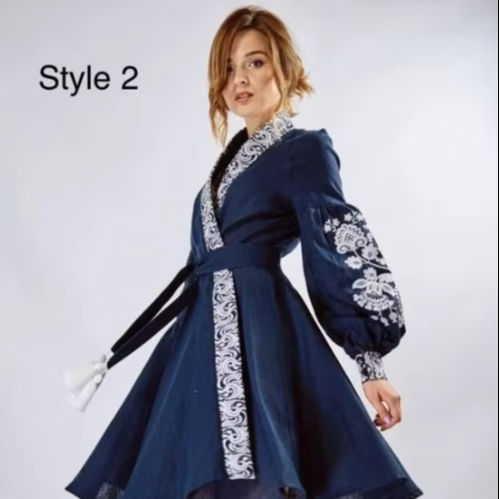 ชุดเดรสปักลายยูเครนของผู้หญิงชุดเดรสผ้าลินิน100% กระเป๋ามีซิปสไตล์ปาร์ตี้หรูหรา