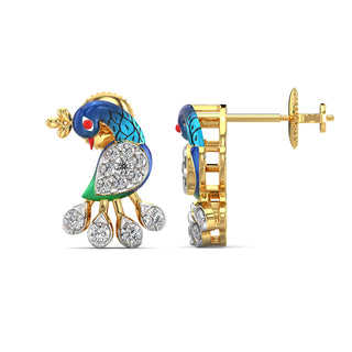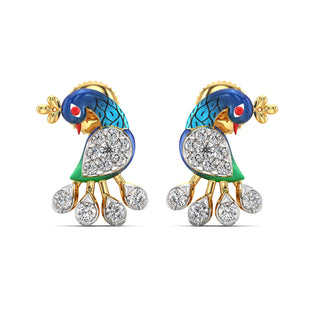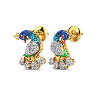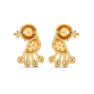 ต่างหูเพชรนกยูงหรูหราสีเหลืองทอง