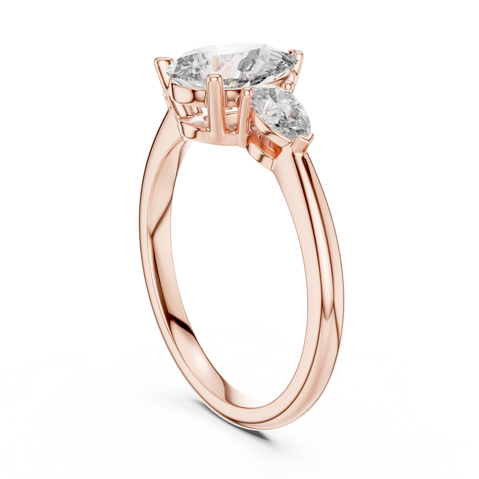 แหวนหมั้นเพชรโมอิสซาไนต์ทรงลูกแพร์สามเม็ด ดีไซน์หรูหรา ตัวเรือนทองคำขาว 14K ผสมเงินสเตอร์ลิง ประดับแบบหนามเตย | แหวนรูปหยดน้ำอย่างประณีต