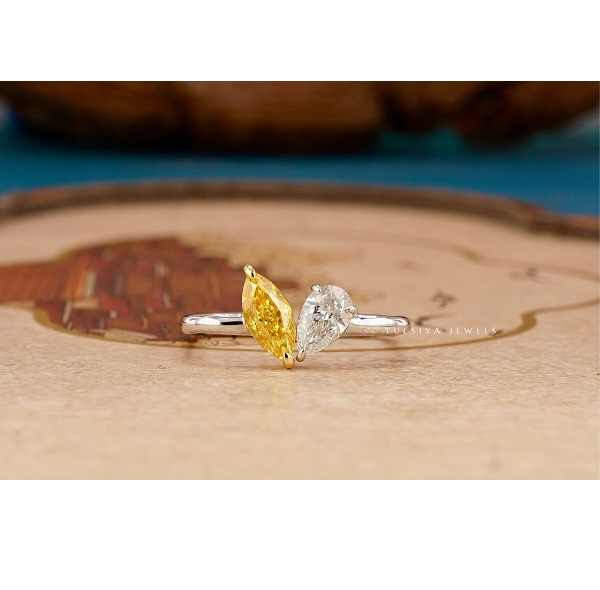 แหวนเพชรผู้หญิงทรงลูกแพร์สุดหรู เครื่องประดับแฮนด์เมดที่เหนือกาลเวลา เพชรระยิบระยับ ดีไซน์คลาสสิก เหมาะสำหรับการหมั้น