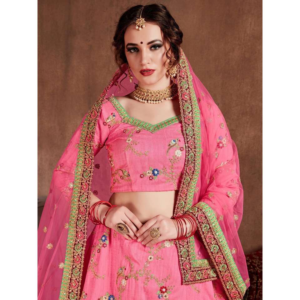 ชุดแต่งกายเจ้าสาวปักลายสีชมพูหรูหรา