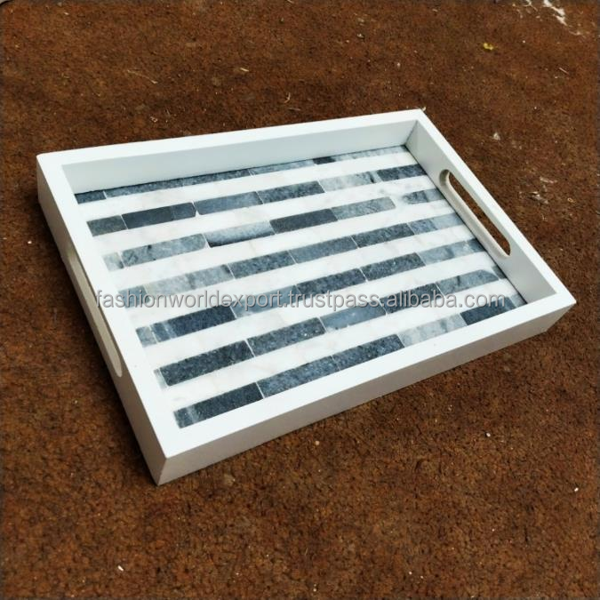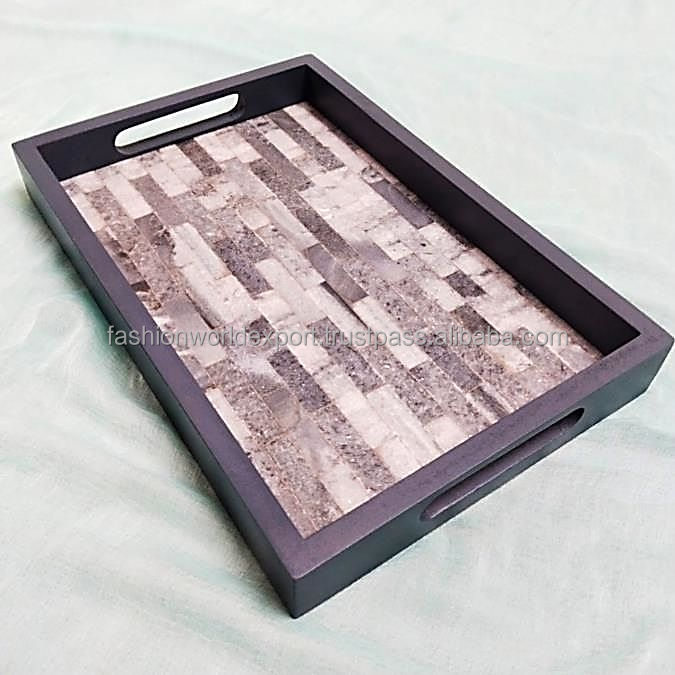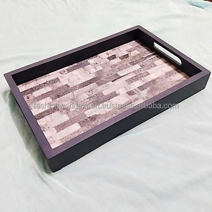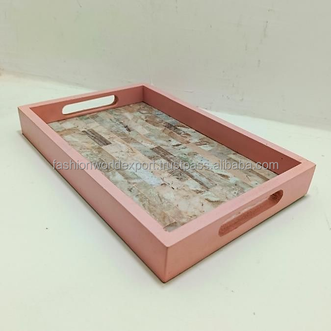 ถาดฝังหินอ่อนสี่เหลี่ยมสี่เหลี่ยมสีชมพูหรูหราถาดหินสำหรับตกแต่งอย่างยั่งยืนเป็นมิตรกับสิ่งแวดล้อมจากอินเดีย