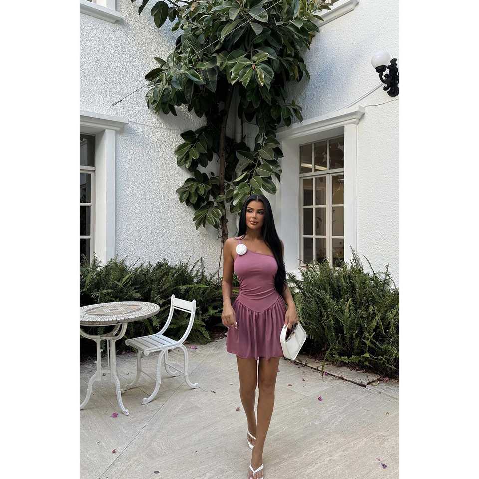 ชุดมินิเดรสสีชมพูหรูหรา แต่งดอกกุหลาบแห้ง ไซส์เดียว ใส่ได้ทั้งไซส์ปกติและไซส์พลัส แฟชั่นลายดอกไม้และสีพื้น สำหรับใส่ในวันธรรมดาและงานปาร์ตี้