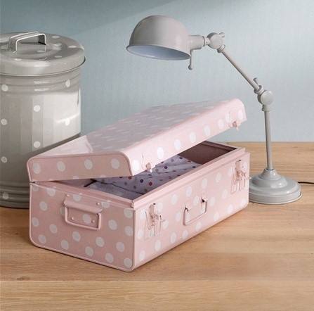 กล่องเก็บของโลหะลายจุดสีชมพูสุดหรูพร้อมฝาปิดแบบมีบานพับเพื่อการจัดระเบียบห้องนอนที่มีเสน่ห์