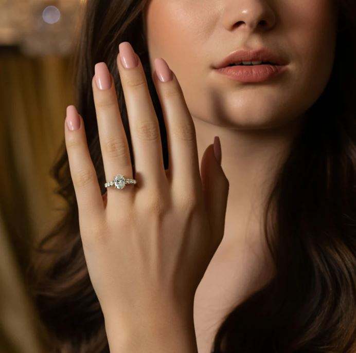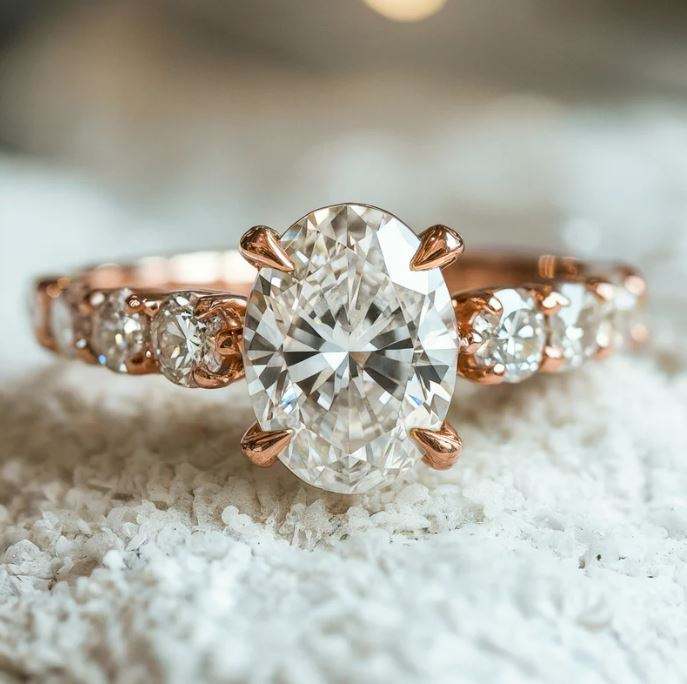 แหวนหมั้นและแต่งงานทรงรีประดับมอสซาไนต์ เงินแท้ 925 ชุบแพลตตินั่มอย่างหรูหรา พร้อมการฝังแบบหนามเตย เหมาะสำหรับวันครบรอบและงานปาร์ตี้