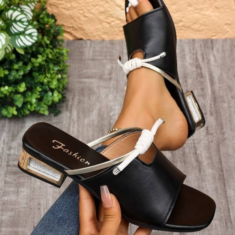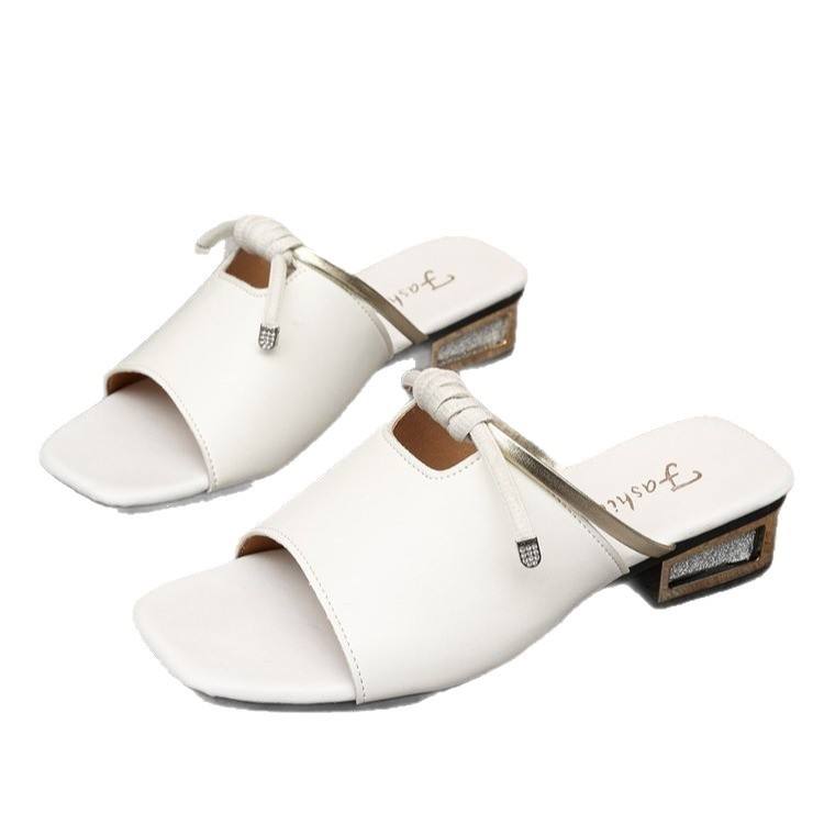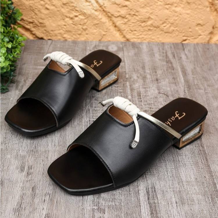 รองเท้าแตะส้นเตี้ยหัวเหลี่ยมขนาดพลัสไซส์สำหรับผู้หญิงรองเท้าส้นหนามาใหม่สำหรับฤดูร้อน