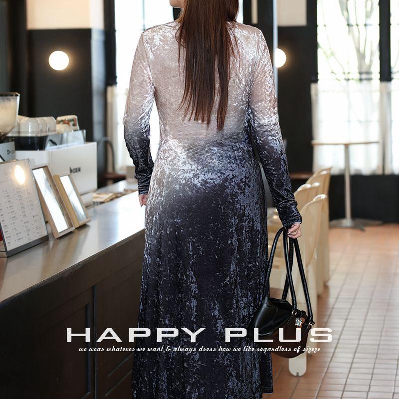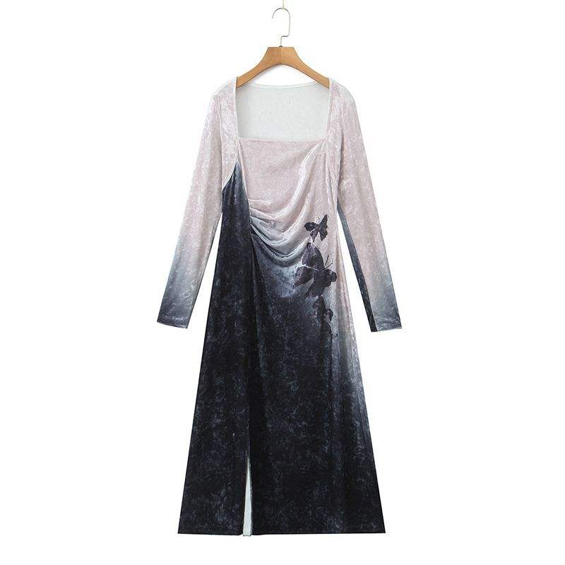 เดรสกำมะหยี่ไซส์พลัส ดีไซน์หรูหรา ลายผีเสื้อไล่เฉดสี คอเหลี่ยม แขนยาว ผ่าข้าง ทรงแม็กซี่ สำหรับผู้หญิง รุ่น N9036