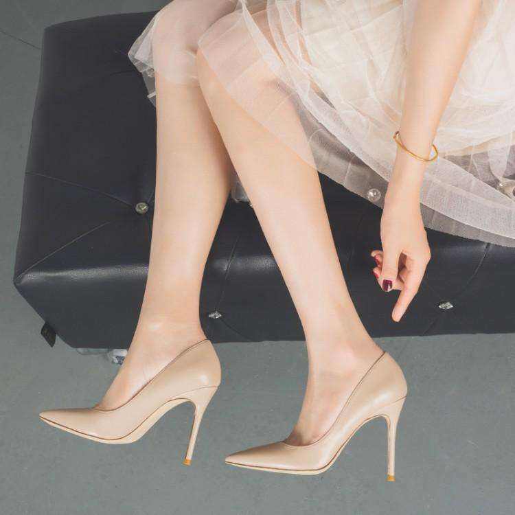 รองเท้าส้นสูงปลายแหลมทรงสวยหรู สีแอพริคอต ไซส์ใหญ่ แบบสวม