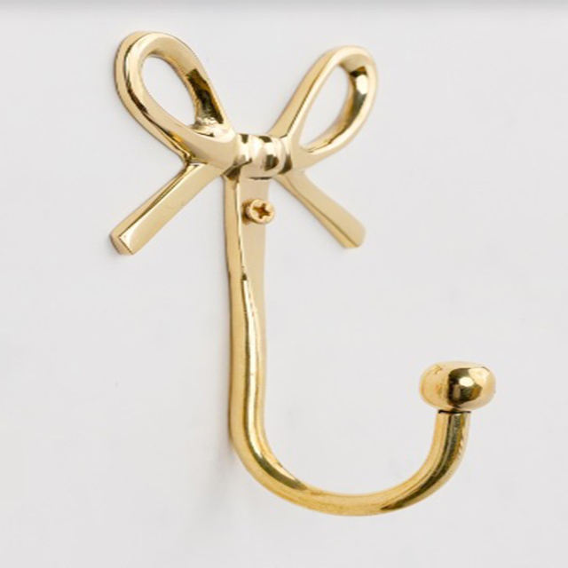 ตะขอแขวนผนังโลหะดีไซน์หรูหรา รูปทรงดอกไม้สีทองขัดเงา เป็นมิตรกับสิ่งแวดล้อม ถอดออกได้ พร้อมริบบิ้นตกแต่ง