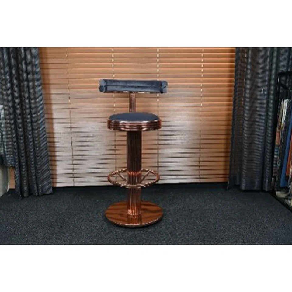 เก้าอี้บาร์โลหะขัดเงาหรูหรามีโครงยึดที่ทนทานพนักพิงทรงกระบอกที่สะดวกสบายสำหรับพื้นที่รับประทานอาหารและบาร์