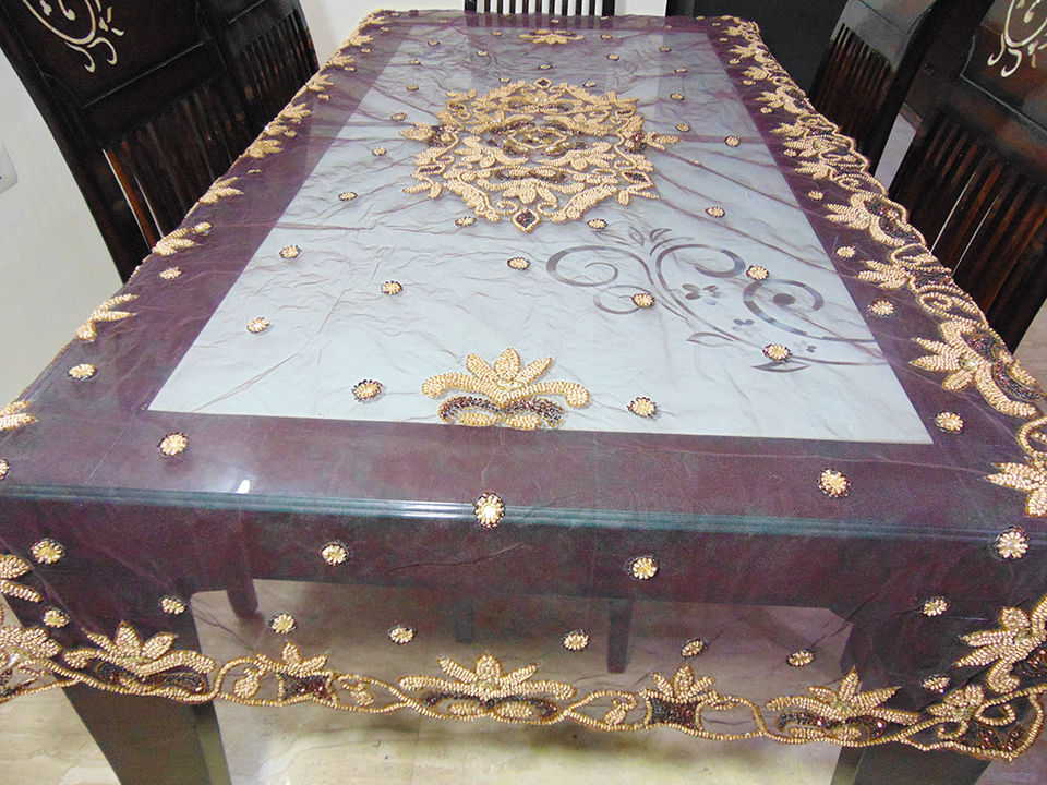 Elegant Polyester Banquet & Wedding Tablecloth Set Luxury Golden Embroidered Cloth with Chair and Table Covers for 6-Seat Dining