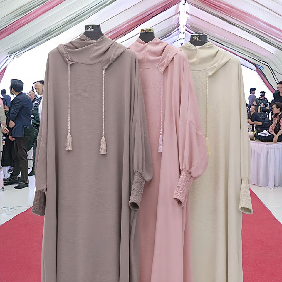 ชุดอาบายะงานแต่งงานผ้าโพลีเอสเตอร์สุดหรูสำหรับผู้หญิง ทรงหลวม มีฮู้ด ยาวถึงข้อเท้า สไตล์ตะวันออกกลาง