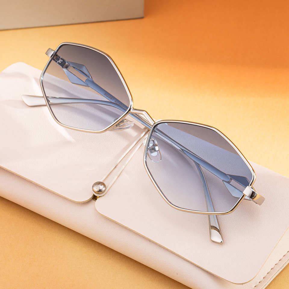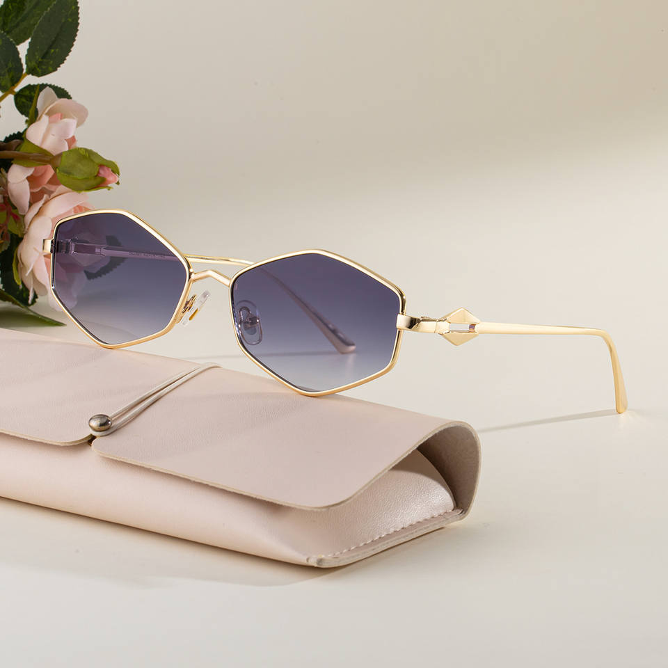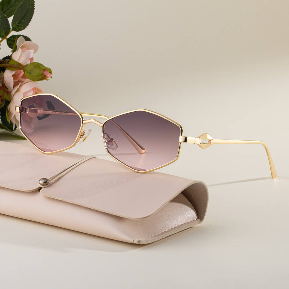 แว่นกันแดดทรงเหลี่ยมหรูหราสำหรับผู้หญิงป้องกันรังสียูวี 400 กรอบโลหะแฟชั่นกันแดดสไตล์กลางแจ้งพร้อมเคส
