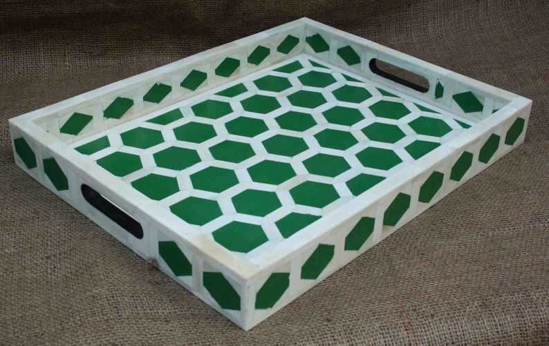 ถาดเสิร์ฟอาหารโลหะฝังกระดูกแบบพรีเมี่ยมหรูหราสำหรับตกแต่งโต๊ะอาหารหรือเสิร์ฟอาหารในบ้านโรงแรมร้านอาหาร