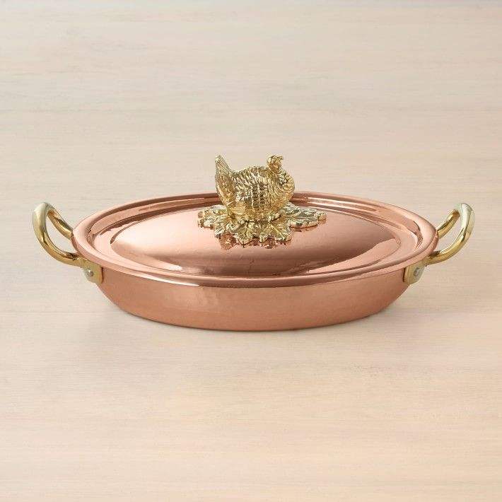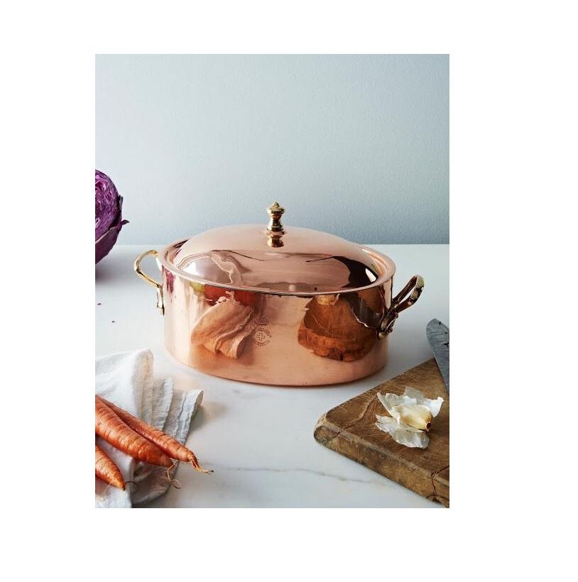 หม้อทองแดงตีลายหรูหราพร้อมฝาปิดดีไซน์สวยงาม เครื่องครัวระดับไฮเอนด์และหม้อเสิร์ฟบนโต๊ะอาหาร