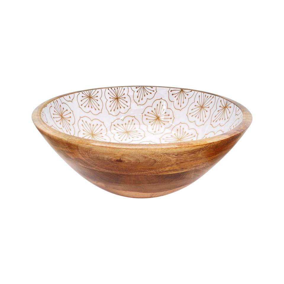 ชามไม้พรีเมียมสุดหรูพร้อมลายเรขาคณิตสีดำเคลือบด้านในเพื่อการเสิร์ฟอย่างมีระดับ