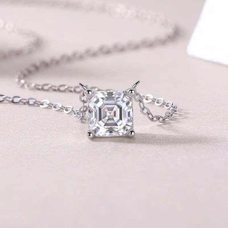 สร้อยคอจี้เพชรทรงเจ้าหญิงสุดหรูในทองคำขาว – เครื่องประดับเพชรทรงสี่เหลี่ยมสไตล์มินิมอลสำหรับผู้หญิง