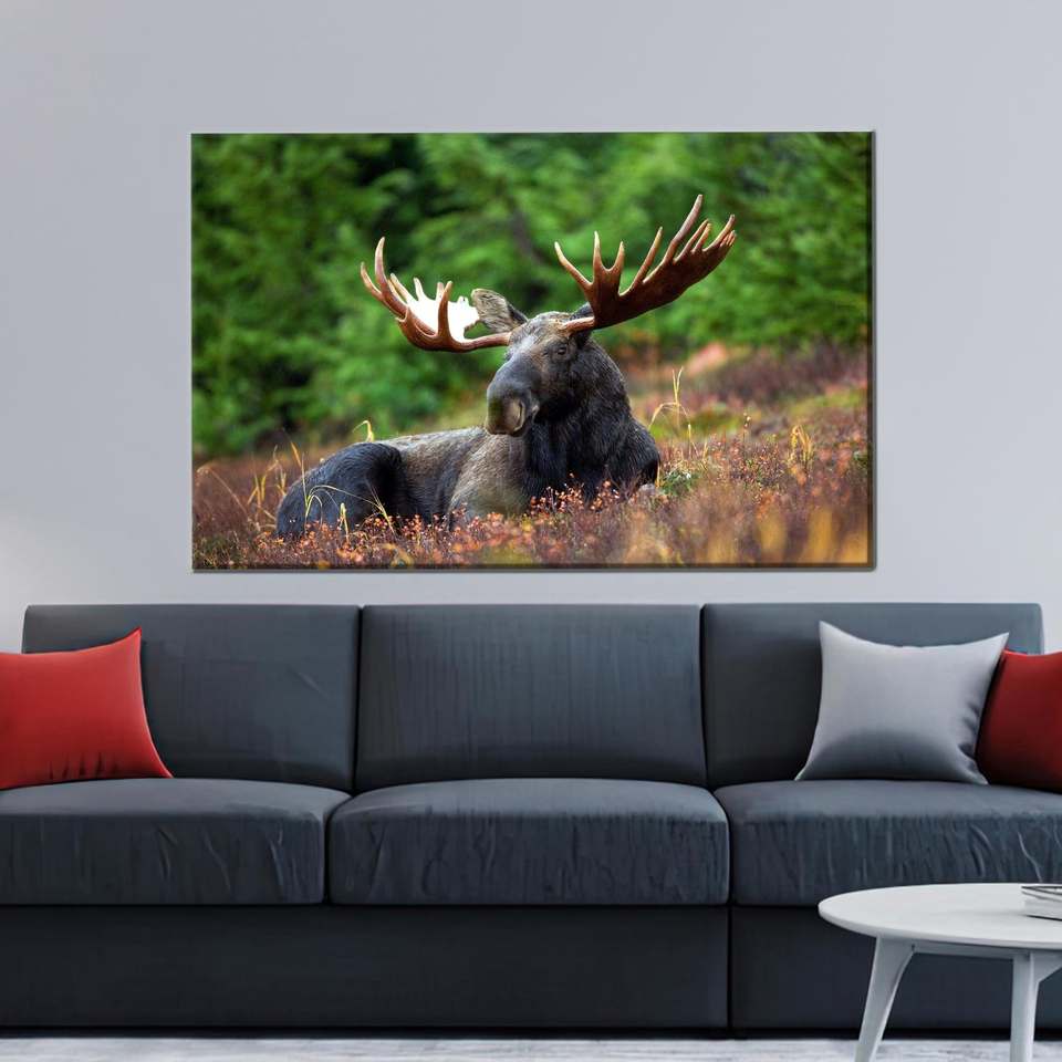 งานศิลปะบนผ้าใบพิมพ์ลายสวยงาม: ฉากป่ากวางสไตล์โบฮีเมียน,1P:ห่อหุ้มอย่างดี