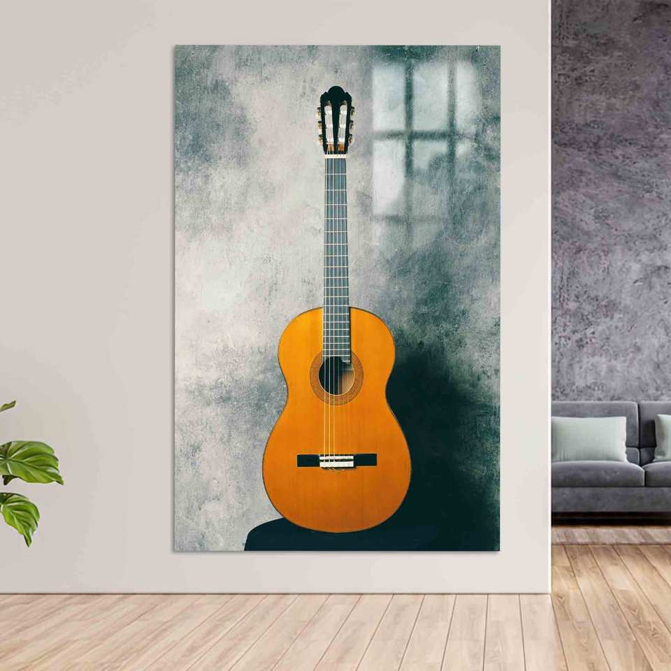 งานศิลปะบนผ้าใบพิมพ์ลายสวยงาม - ของตกแต่งดนตรีกีตาร์สมัยใหม่, แก้ว