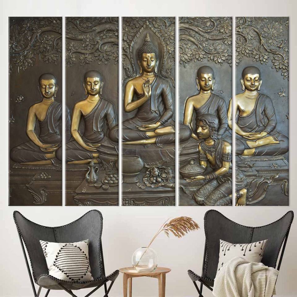 Elegant Printed Canvas: Buddha Statue Wall Art for Living Room,5P:Gallery Wrapped