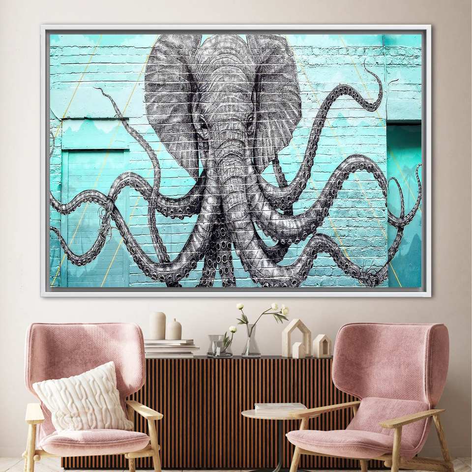 ผ้าใบพิมพ์ลายสวยงาม: ศิลปะกราฟฟิตีสมัยใหม่บนผนังและงานศิลปะรูปปลาหมึกสีสันสดใส,1P:กรอบสีขาว