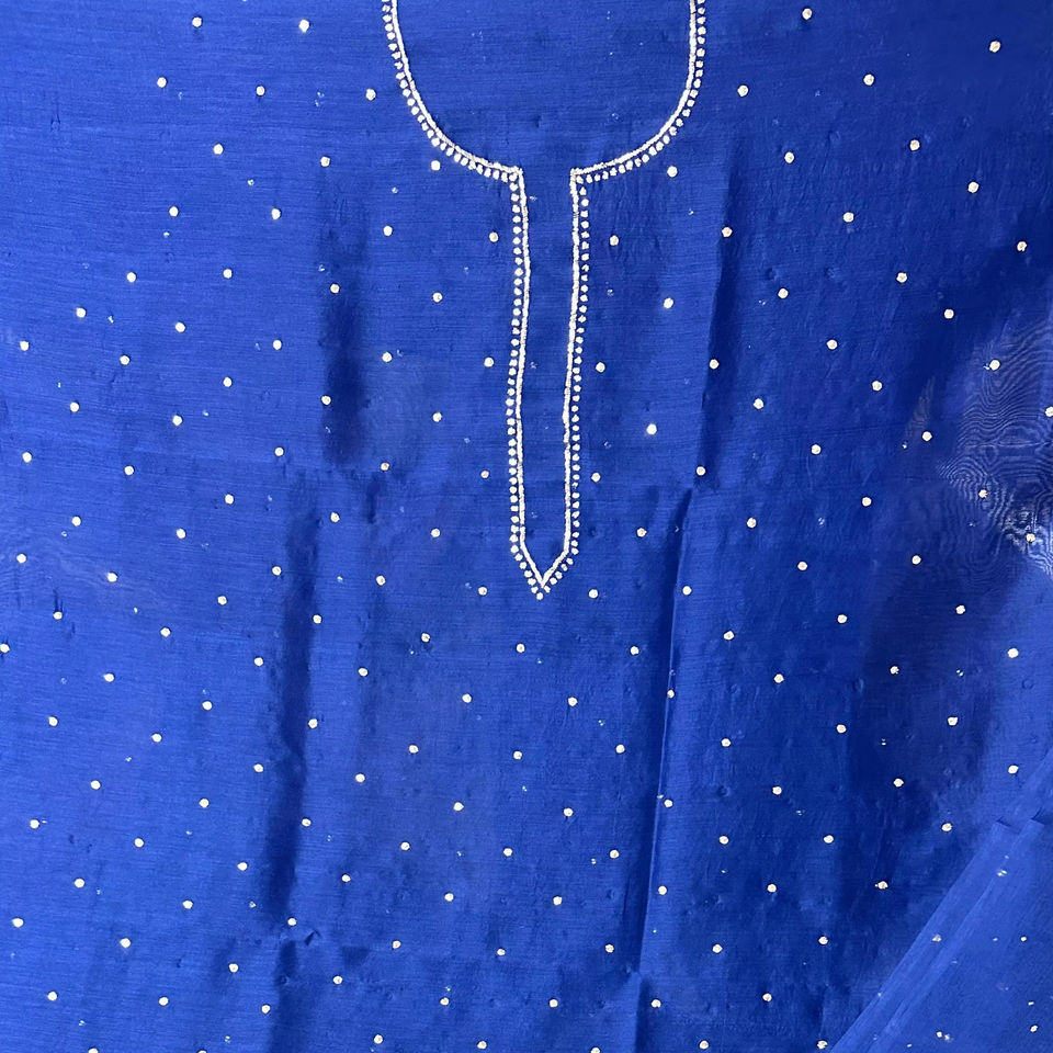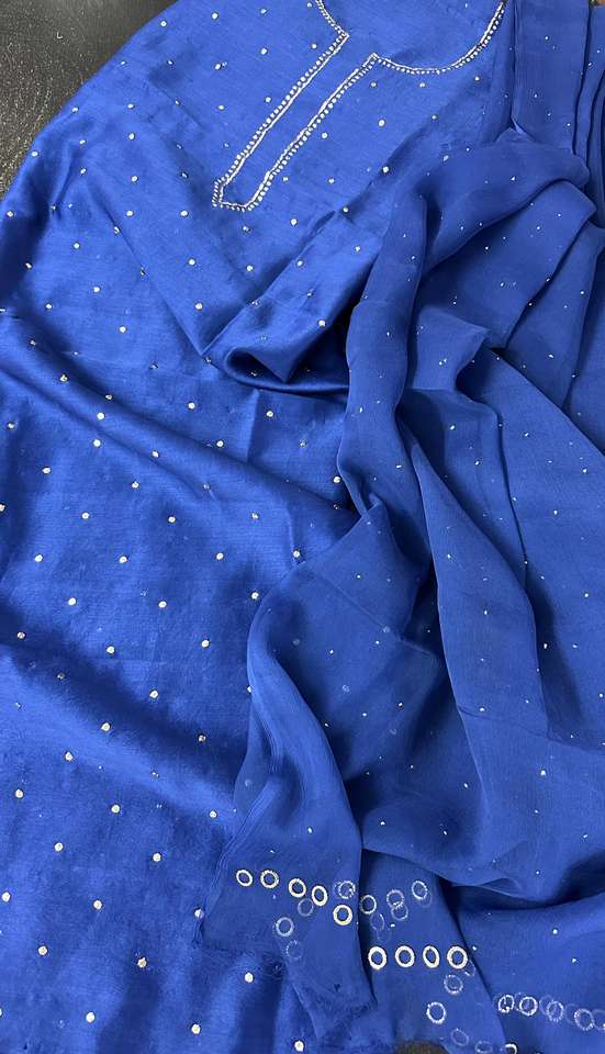 เสื้อเชิ๊ตผ้าไหมแท้หรูหราพร้อมการทำงาน mukesh และผ้าชีฟอง dupatta ยาวถึงเข่าแบบทางการผ้ายืดเอวแข็ง