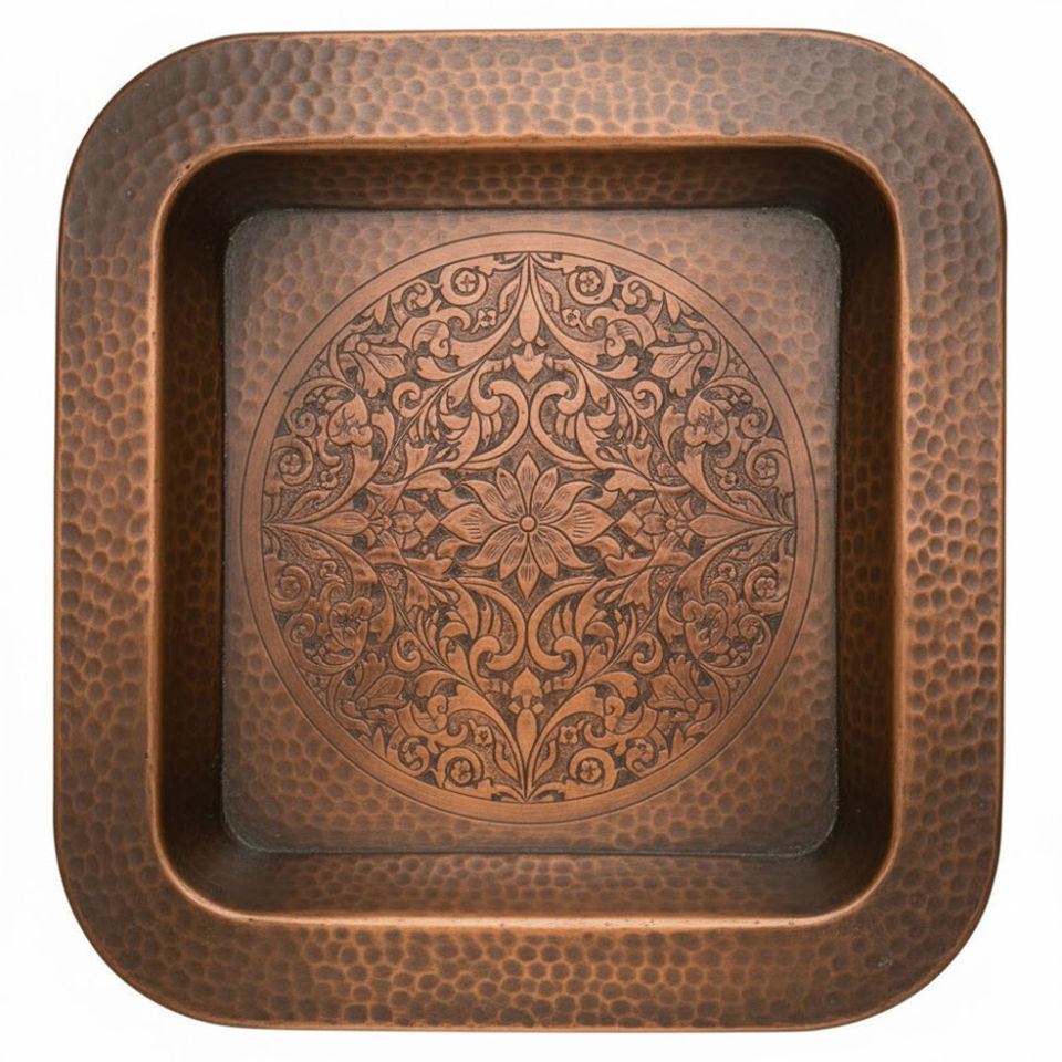 ถาดเสิร์ฟทรงสี่เหลี่ยมผืนผ้า ลายดอกไม้สลักบนทองแดงแท้ ดีไซน์หรูหรา พร้อมหูจับ สำหรับตกแต่งบ้านและเป็นของขวัญ