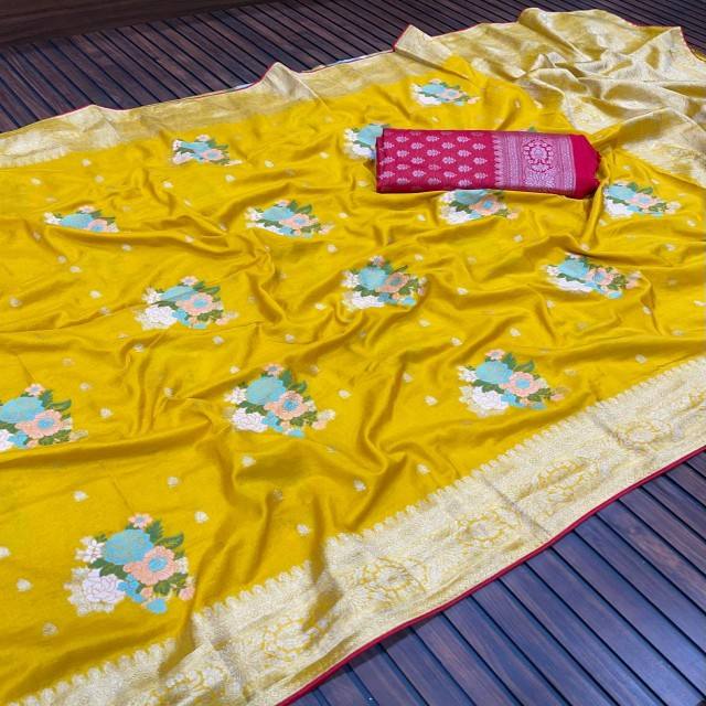 ผ้าเครป Kadi georgette Saree แท้สง่างามที่มีผ้าแจ็คการ์ดที่อุดมไปด้วยและการทอผ้าเมนาการิแบบดั้งเดิมผ้านุ่มและไหล