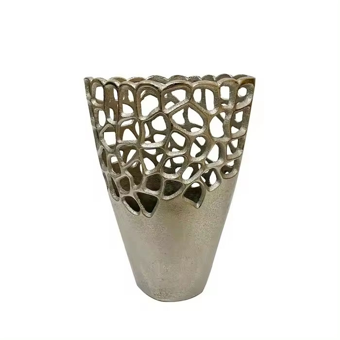 แจกันดอกไม้จากนักออกแบบที่ดูสง่างามสีเงินสำหรับตกแต่งห้องแจกันดอกไม้อลูมิเนียมดีไซน์ตาข่าย
