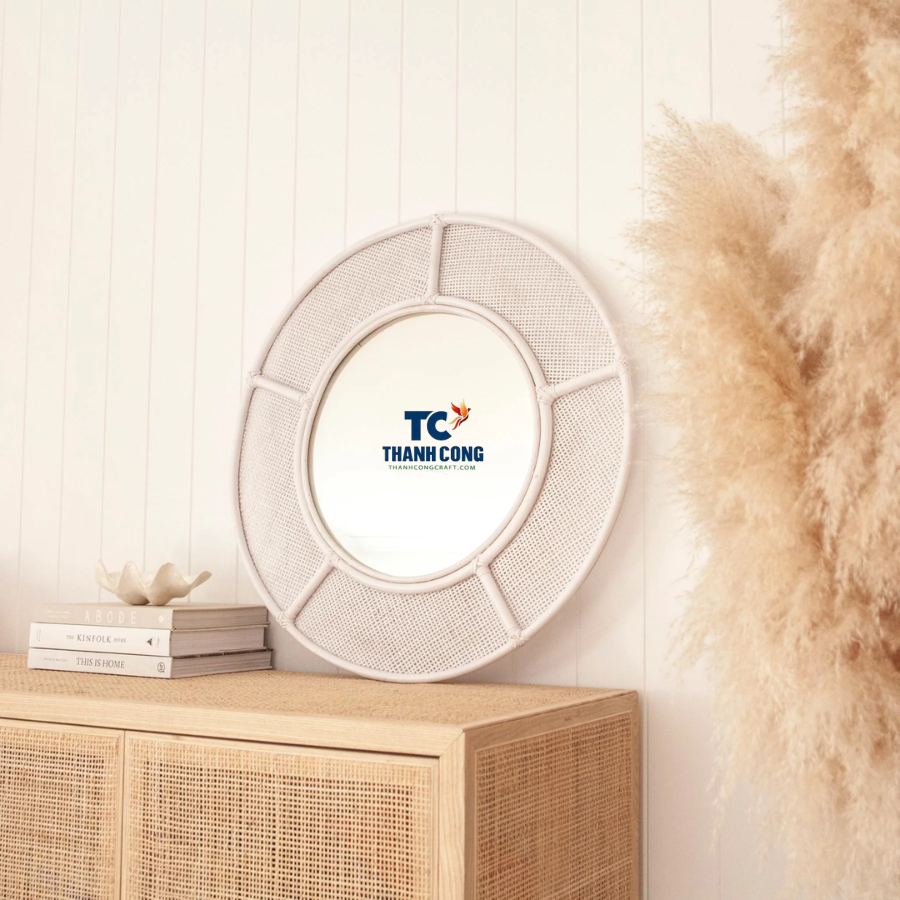 กระจกหวายหรูหราพร้อมกรอบกระจกหวายที่ออกแบบอย่างประณีตกระจกหวายที่เหมาะสำหรับการตกแต่งห้องใดๆ