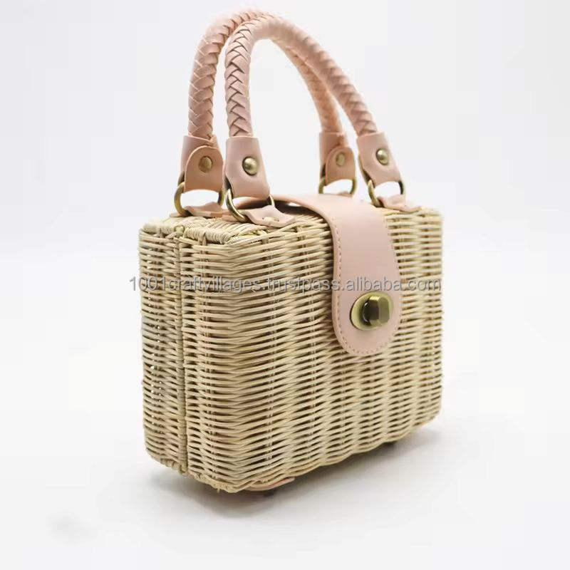 กระเป๋าถือหวายขนาดเล็กหรูหราเป็นมิตรกับสิ่งแวดล้อมกระเป๋าผ้าทอสำหรับการเดินทางและสไตล์สตรีทจำนวนมากน้ำหนักเบาจากเวียดนาม