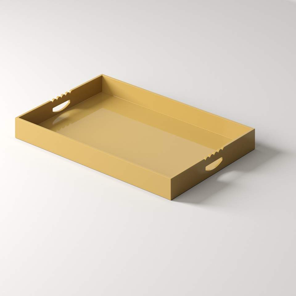 ถาดเสิร์ฟเคลือบสีเหลืองสี่เหลี่ยมผืนผ้าหรูหราพร้อมขอบระลอกจับถาดเสิร์ฟเคลือบเงาสูงทําด้วยมือสําหรับบ้าน