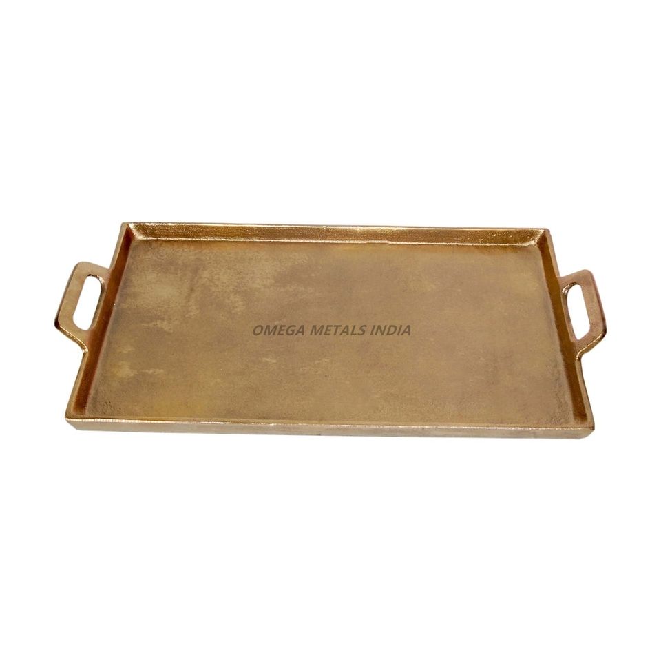 ถาดเสิร์ฟทองเหลืองทรงสี่เหลี่ยมสวยงามพร้อมพื้นผิวที่เรียบและที่จับแข็งแรงสำหรับการแสดงที่ทันสมัยและความต้องการความบันเทิง