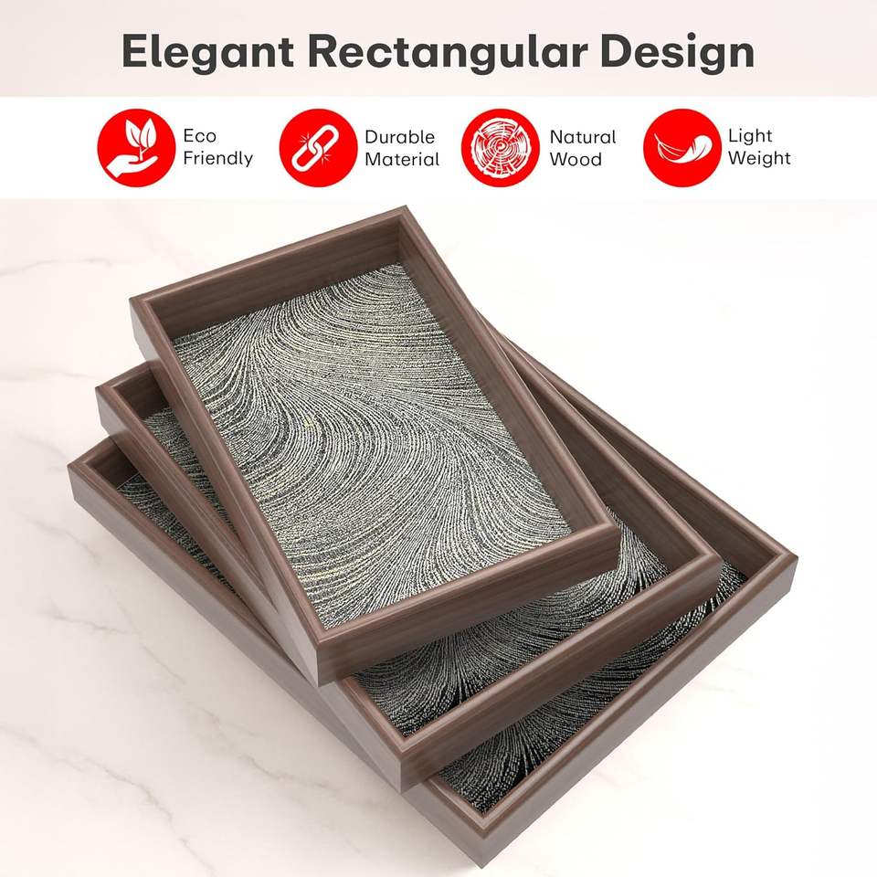 ถาดไม้ทรงสี่เหลี่ยม ดีไซน์หรูหรา เป็นมิตรกับสิ่งแวดล้อม น้ำหนักเบา เช็ดทำความสะอาดง่าย เหมาะสำหรับการส่งออก