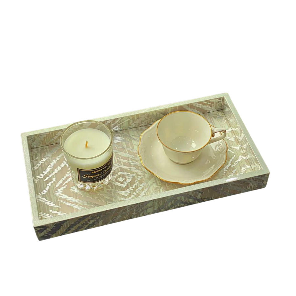 ถาดไม้เคลือบเงาทรงสี่เหลี่ยมหรูหรา - ลายปลาคาร์ฟวาดด้วยมือ - ของตกแต่งภายในบ้านสุดหรู