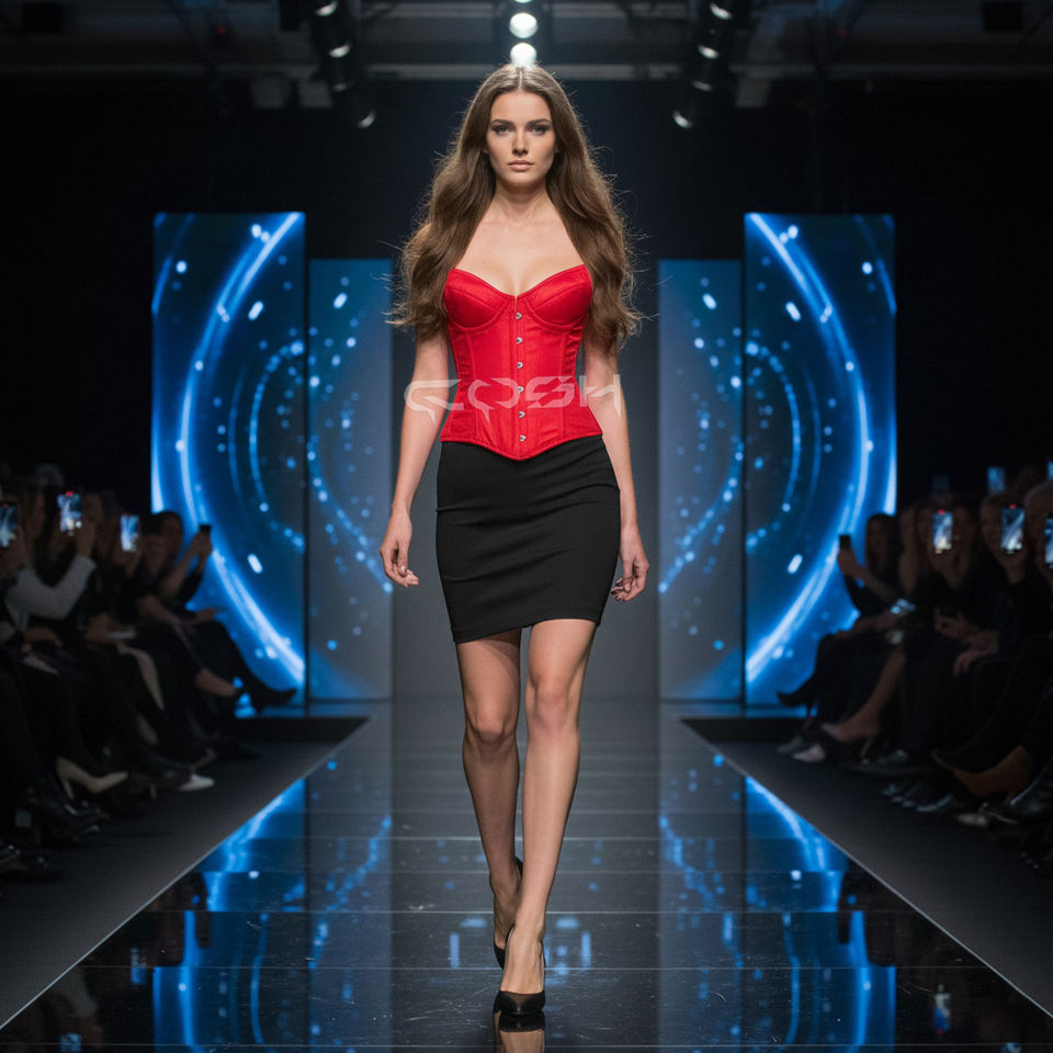 ชุดกระชับสัดส่วนคอร์เซ็ทแฟชั่นสีแดงกำมะหยี่หรูหรา คอรูปหัวใจ พร้อมโครงเหล็กเสริม สำหรับใส่ในงานแต่งงาน