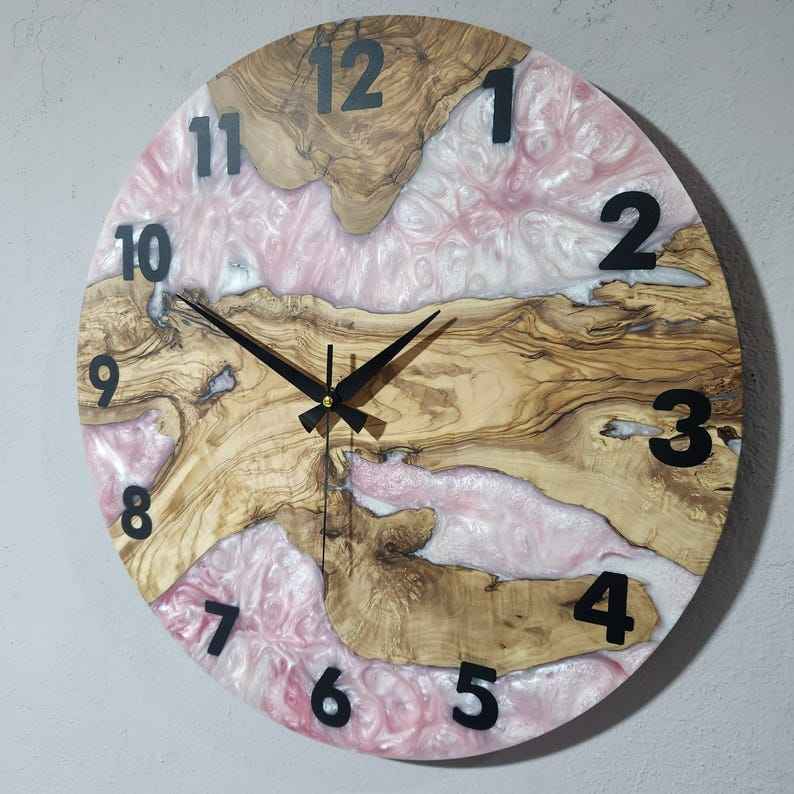 นาฬิกาแขวนผนังเรซิ่นและไม้ ดีไซน์หรูหรา ทันสมัย ทำด้วยมือ ทนทาน ใช้งานได้จริง สวยงาม และตกแต่งได้อย่างลงตัว เหมาะสำหรับห้องนั่งเล่นและห้องนอน