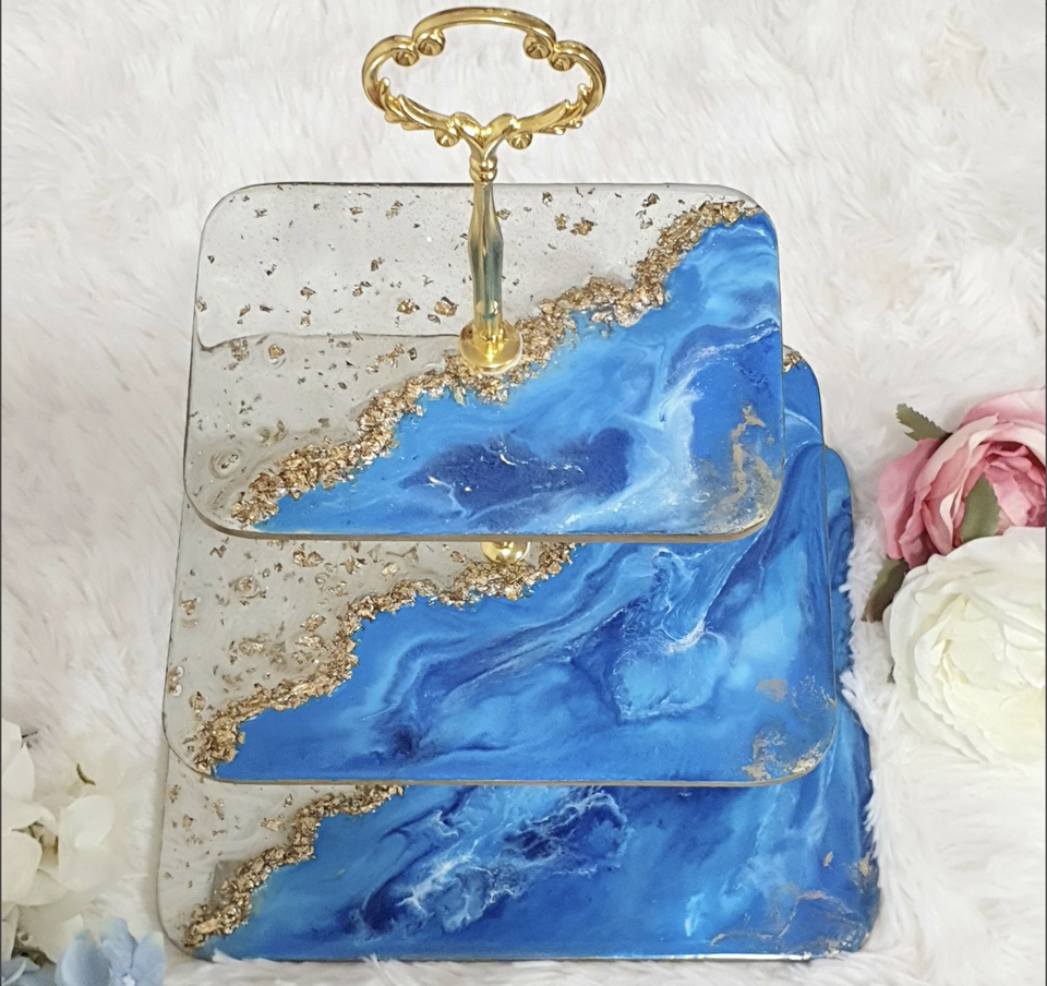 แท่นวางเค้กเรซินหรูหราสำหรับงานแต่งงานและโอกาสพิเศษแท่นวางเค้กทำด้วยมือทำจากเรซิ่นที่สวยงาม