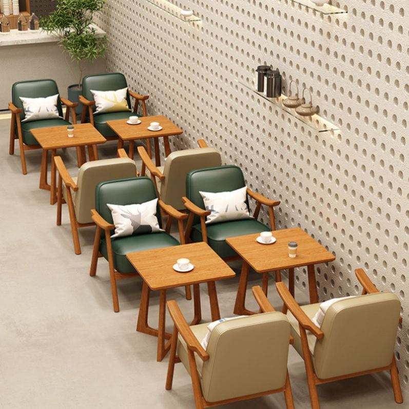 ชุดโต๊ะและเก้าอี้ทำจากไม้และหนังเฟอร์นิเจอร์เชิงพาณิชย์สไตล์ย้อนยุคหรูหราสำหรับร้านอาหารร้านกาแฟร้านกาแฟ