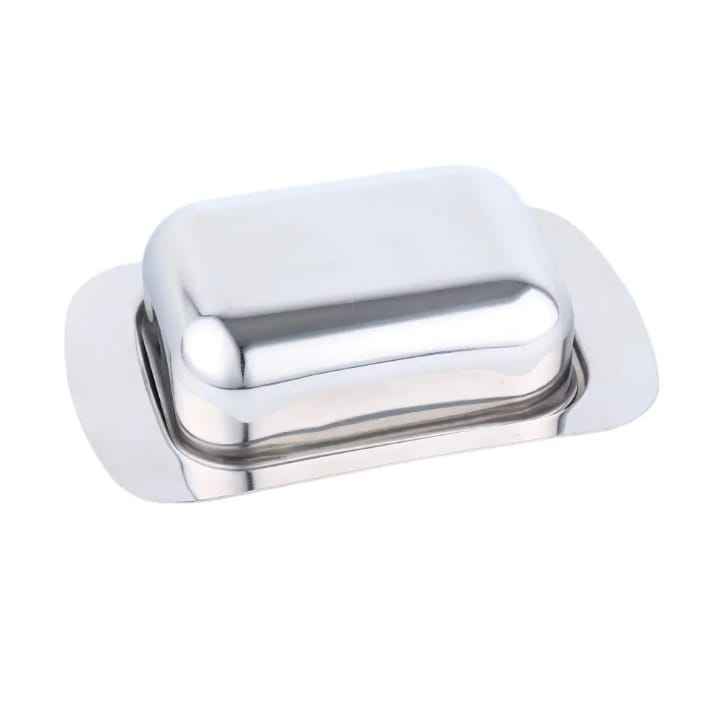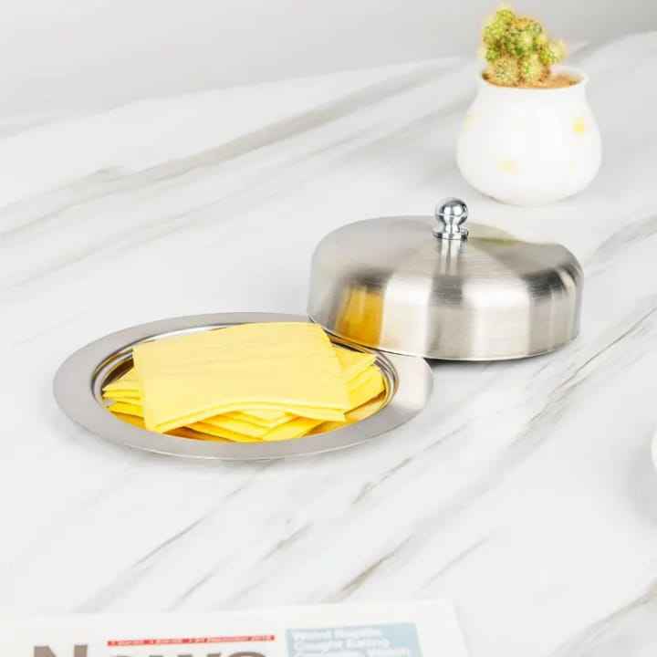 Elegant Ribbed Silver Stainless Steel Butter Dish with Dome Lid and Round Finial Handle Luxury Mirror Finish Butter Keeper