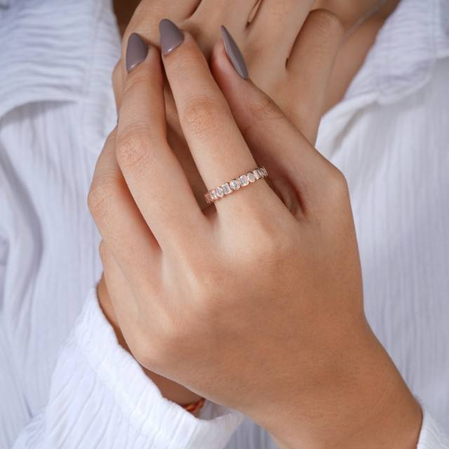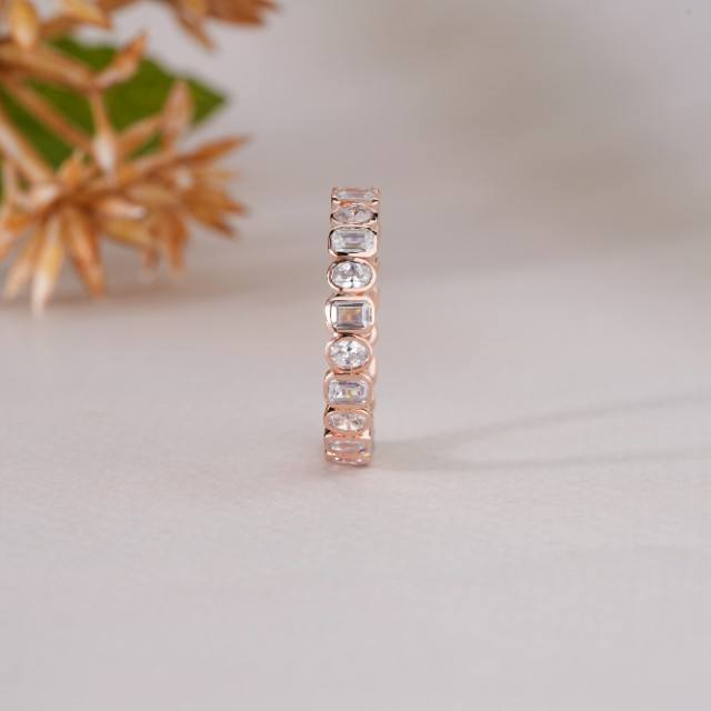 แหวนแต่งงานมินิมอลประดับเพชรโมอิสซาไนต์ทรงเรเดียนท์คัท ตัวเรือนโรสโกลด์หรูหรา สำหรับผู้หญิง ของขวัญเครื่องประดับทันสมัย