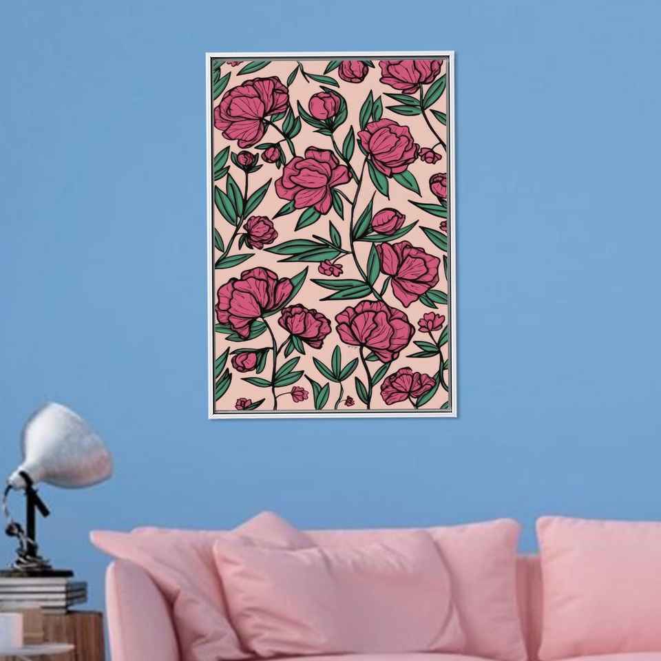 ภาพพิมพ์บนผ้าใบลายดอกกุหลาบสุดหรู - ของขวัญลายดอกไม้สำหรับคุณแม่ กรอบสีขาว